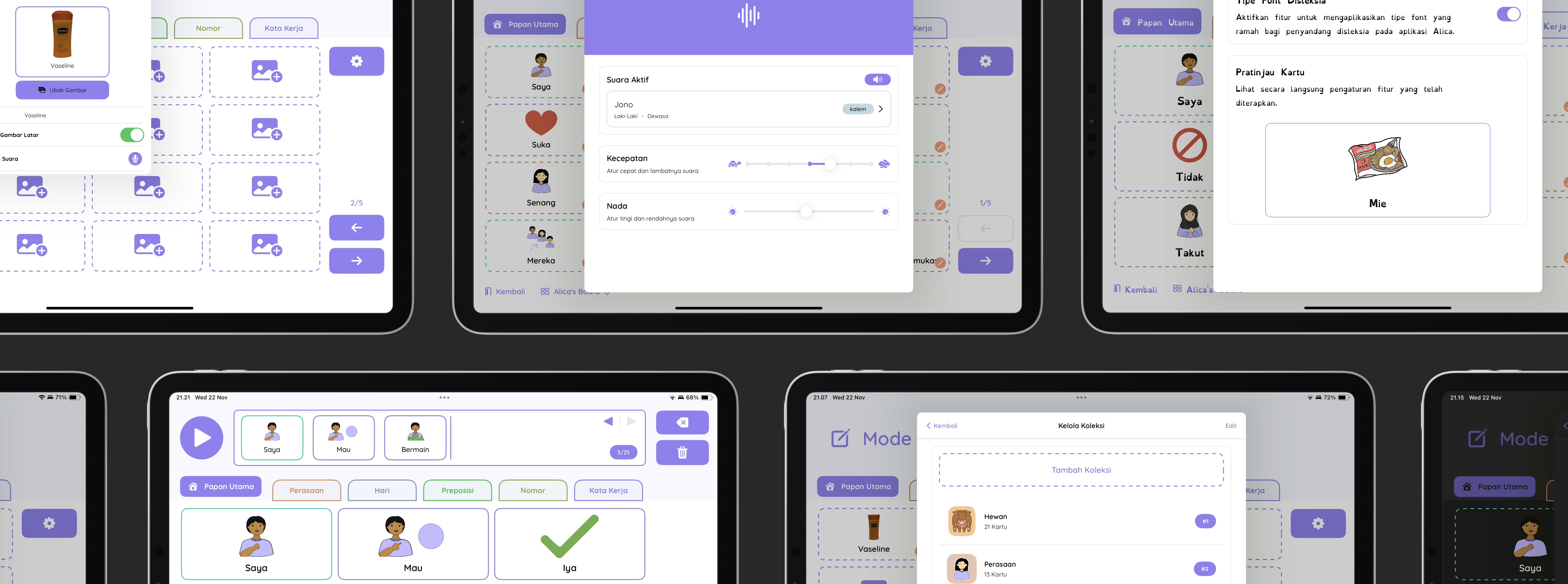 Alica is designed as an AAC App with a specific focus on localized content. This approach helps individuals with autism better comprehend words, especially considering the unique context of terms used in Indonesia, such as differences in bus terminology. Its high level of customization sets Alica apart, allowing users to adjust grid size, sound settings, and more.