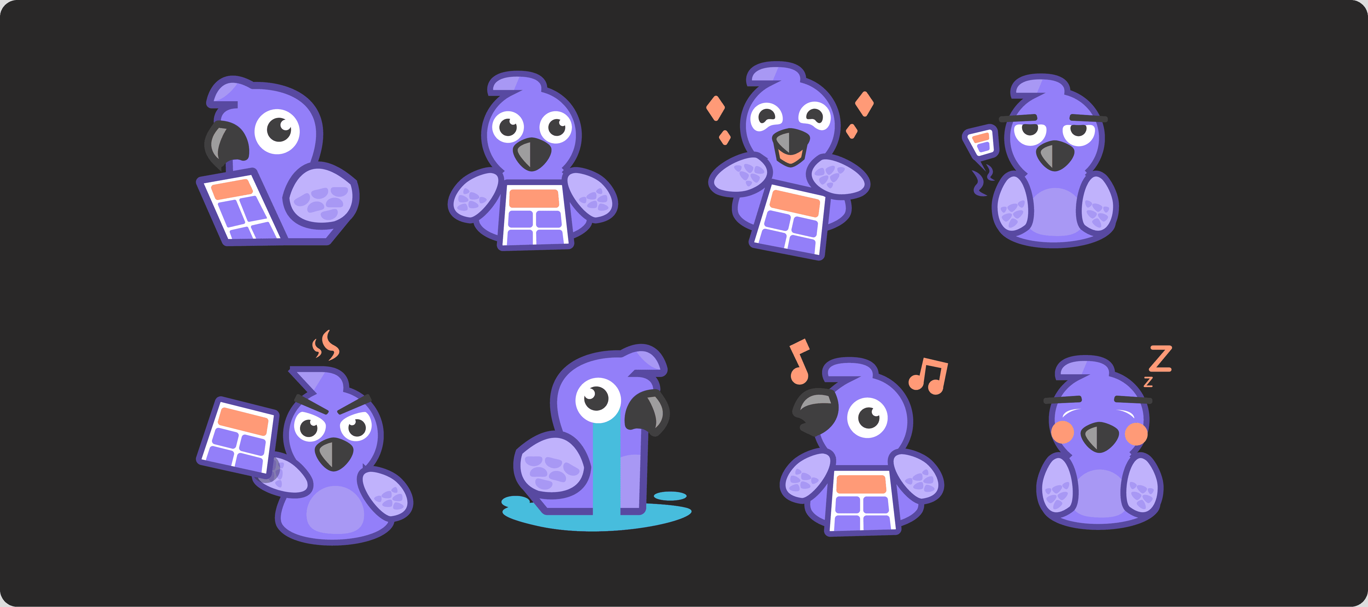 Since Alica is a tool for non-verbal children to express themselves, the mascot is designed as a friendly and cheerful parrot. By representing Alica, the mascot aims to convey that it can help express different emotions. Alica's parrot character is designed with a range of expressions to enhance its relatability.