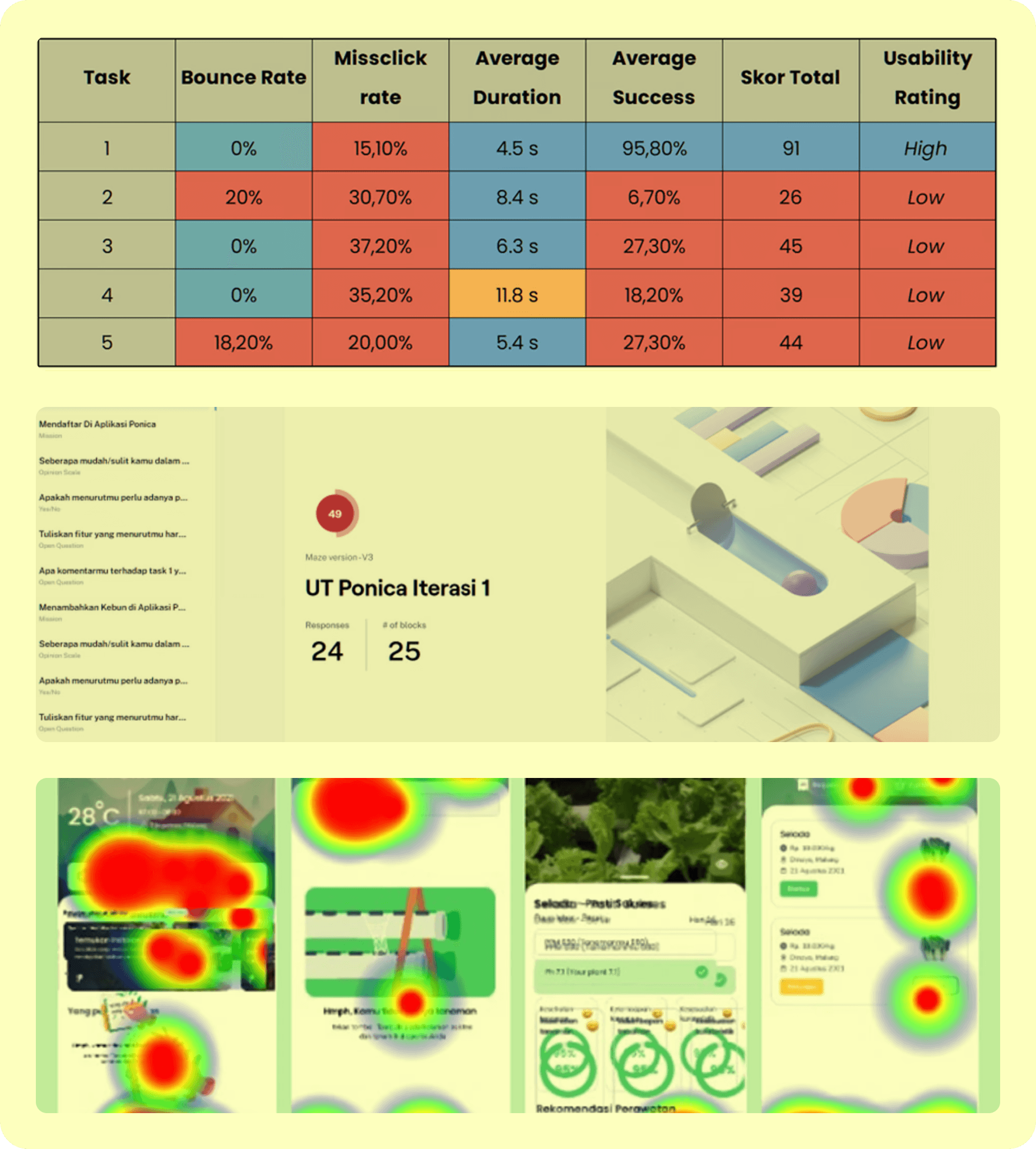 In the first iteration, the usability rate of the prototype is still low. So it is necessary to repair specific screens. For this reason, an analysis is used on the heatmap of each screen to examine further what makes the user unable to run the screen properly and then make improvements in the next iteration stage.