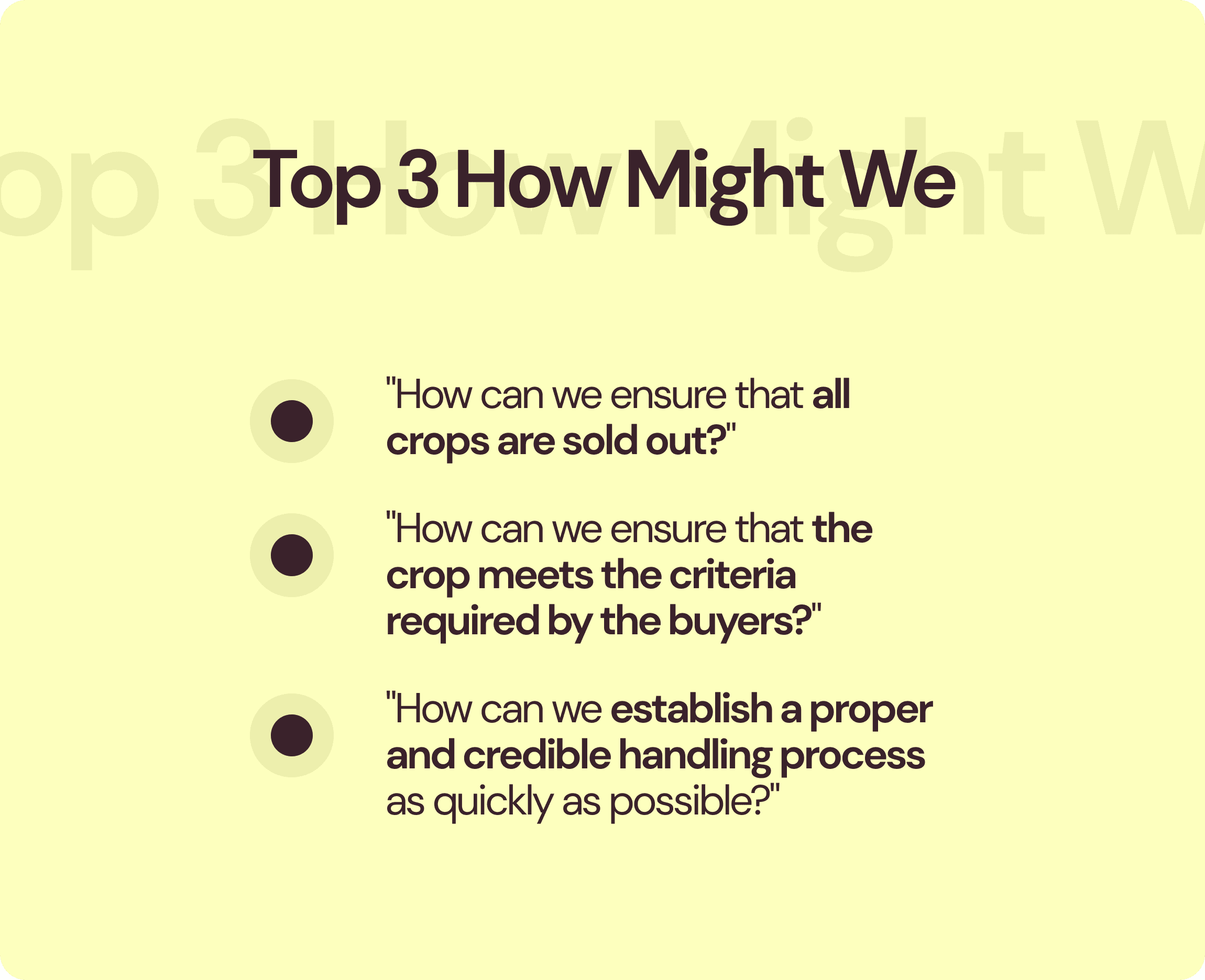 To address the three How Might We (HMW) questions from the previous process, our team conducted a mini-workshop with our own team members as participants. The goal of this workshop was to generate as many ideas as possible to discover feasible features for the three HMWs. Here are some features that emerged from the mini-workshop results.